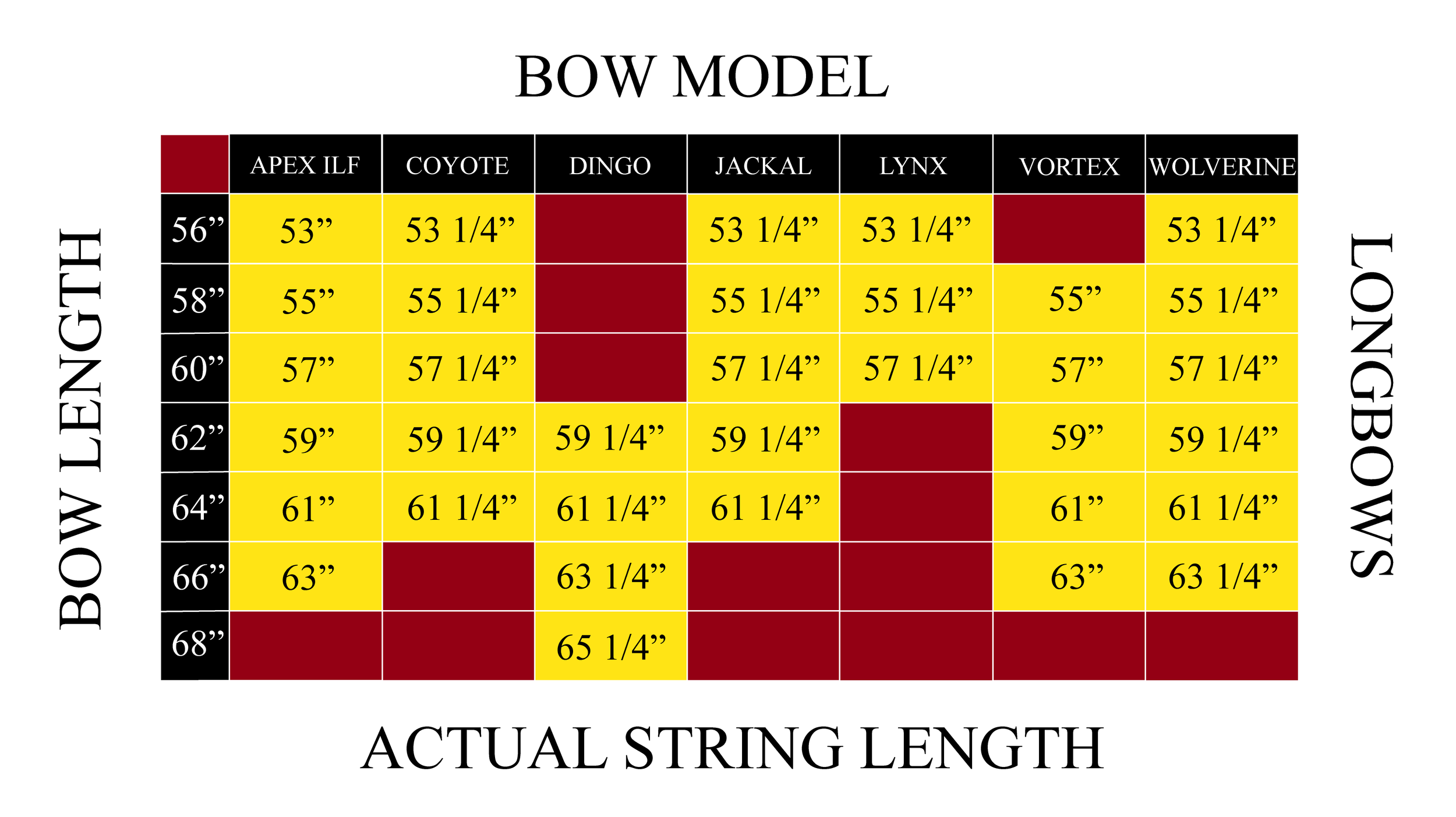 While the Vortex and Apex ILF string lengths remain unchanged, all other Stalker stick-bows with a serial number dating before 2022 must continue to abide by the old string length guides.